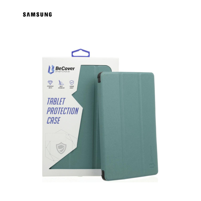 Тип - обкладинка, Сумісність з моделями - Samsung Galaxy Tab S7, Samsung Galaxy Tab S8, діагональ - 11, Спосіб кріплення - рамка-тримач, Матеріал - термополиуретан, штучна шкіра, зелений
