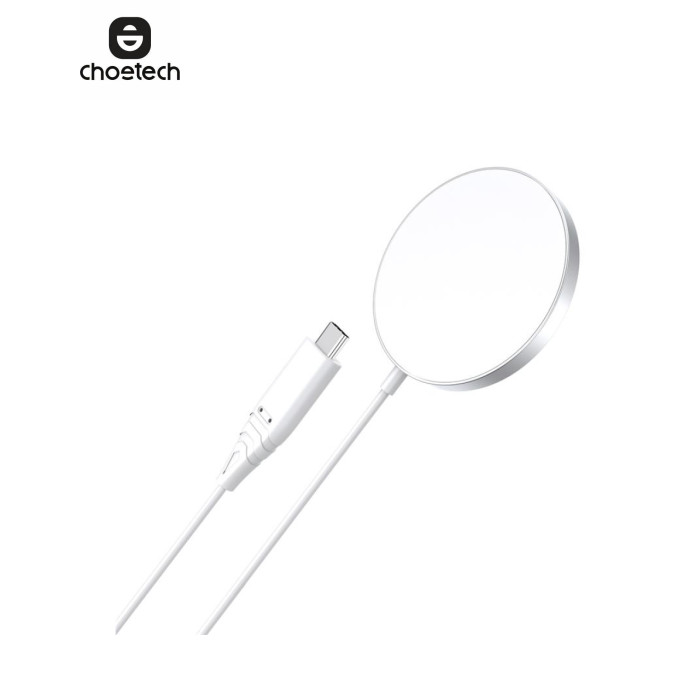 | Індуктивний зарядний пристрій Choetech T518-F потужністю 15 Вт із вбудованим кабелем USB C (білий)