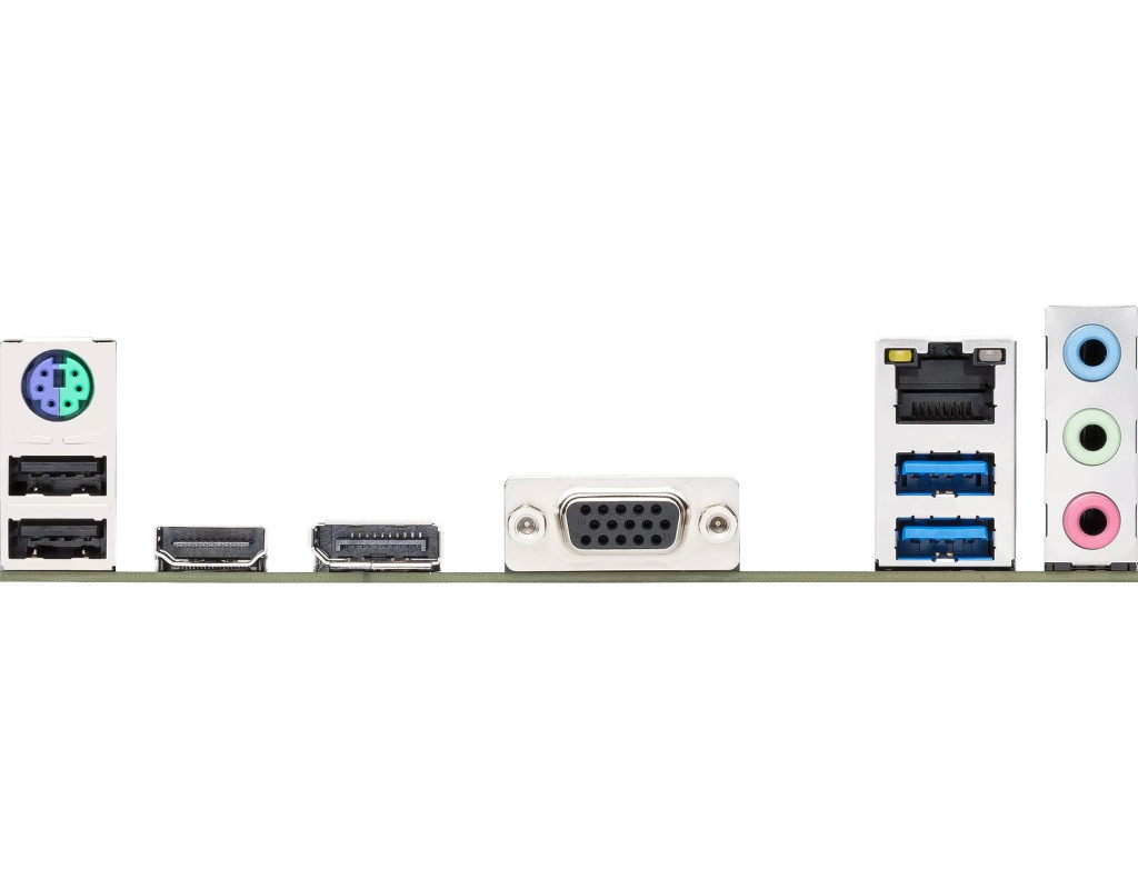 1 x DisplayPort, 1 x HDMI, 1 x PS/2, 1 x RJ45, 1 x VGA, 2 x USB 2.0, 2 x USB 3.2 Gen 1 Type-A, 3 x Audio |