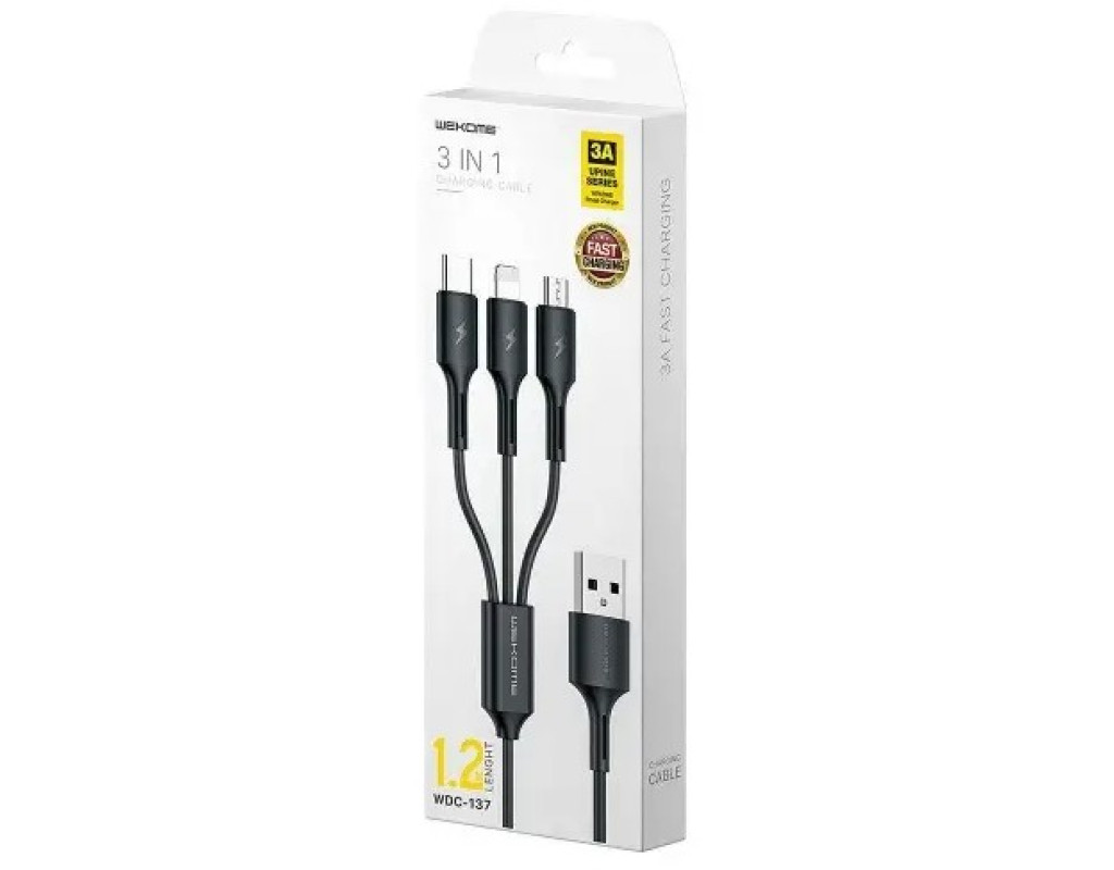 Кабель WK WDC-137 Upine Series 3-in-1 Lightning-МicroUSB-Type-C, 3А, 1.2м чорний