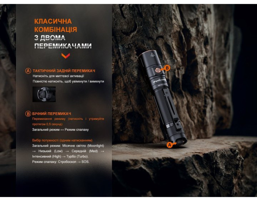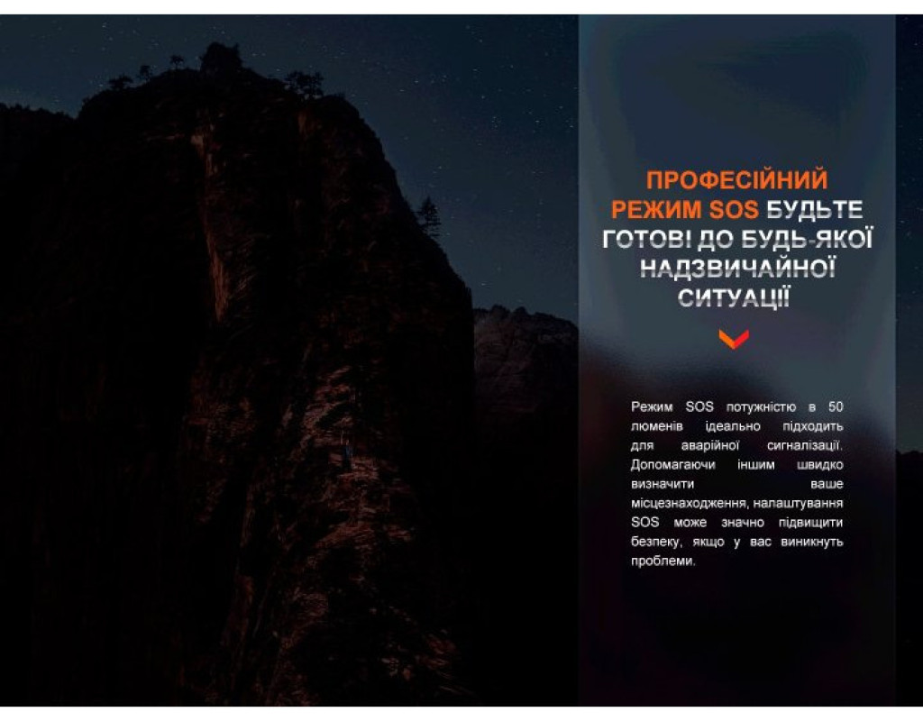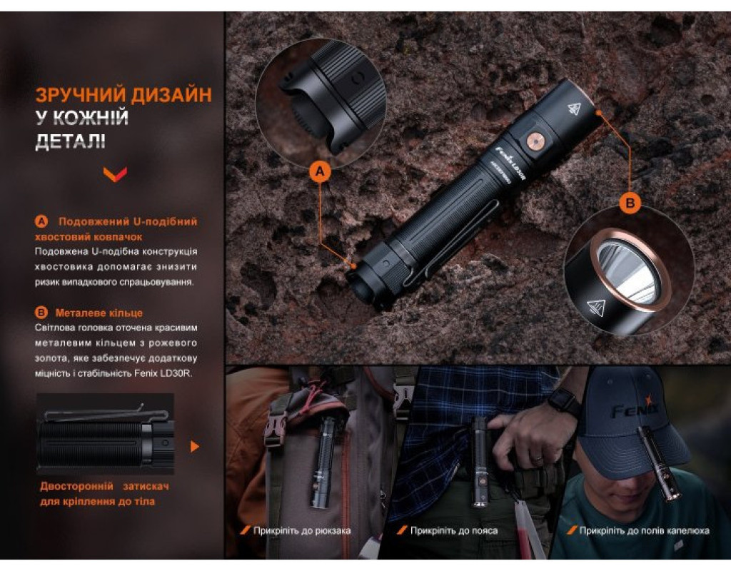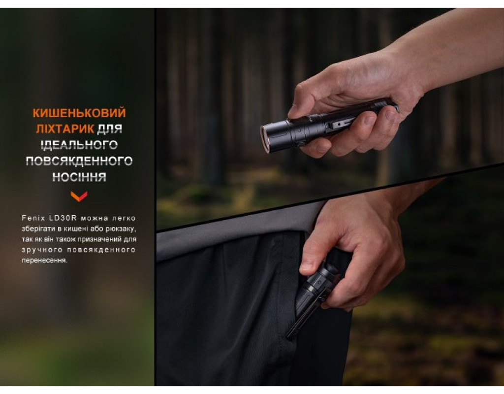 | Ліхтар Fenix LD30R — це поєднання потужності, надійності та інновацій, що робить його ідеальним вибором як для повсякденного використання, так і для активного відпочинку. Завдяки своїй лумінесцентній технології із використанням світлодіода Luminus SST40, цей ліхтар досягає яскравості у 1700 люмен і забезпечує дальність світлового потоку до 267 метрів. Така потужність дозволяє мати впевненість навіть у найтемніших умовах. Однією з ключових переваг моделі є можливість вибору з семи режимів роботи, включаючи "місячне сяйво", турбо та SOS. Така різноманітність режимів дозволяє підлаштовувати освітлення під будь-які потреби, будь-то приглушене світло для читання чи потужний потік, який освітлить шлях під час екстремальних умов. Всі режими пам'ятаються, що дозволяє легко і швидко відновити обраний режим при наступному увімкненні. Fenix LD30R розроблений з урахуванням найвищих стандартів якості та надійності. Він виготовлений з металу, має анодоване покриття, що запобігає корозії та забезпечує ударостійкість навіть при падінні з висоти до 1 метра. Ліхтар витримує півгодинне занурення у воду на глибину до 2 метрів, відповідаючи класу захисту IP68. Це робить його ідеальним супутником для любителів подорожей і активного відпочинку, де на перше місце виходить надійність і міцність обладнання. Енергоефективність — ще один аспект, на який варто звернути увагу. Ліхтар працює від стандартного акумулятора 18650 або двох батарей CR123A, що дозволяє адаптувати джерело живлення відповідно до умов. Функція швидкого заряджання через USB Type-C порт забезпечує зручність в експлуатації — повна зарядка займе всього 3 години. Модель оснастили кліпсою для кріплення на поясі та ремінцем на руку, що додає легкості при транспортуванні і зберіганні. Разом з ліхтарем у комплекті йдуть різноманітні аксесуари: чохол, запасні ущільнювальні кільця, індикатор низького заряду, що дозволяє легко слідкувати за рівнем заряду, і гарантія. Окрім відмінних технічних характеристик, Fenix LD30R приваблює своїм естетичним дизайном у класичному чорному кольорі, що робить його стильним аксесуаром. Його довжина становить 129.7 мм, а вага не перевищує 132 г, завдяки чому він комфортний у використанні та транспортуванні, не займаючи багато місця у вашому рюкзаку або кишені. Fenix LD30R — це не просто ліхтар. Це надійний помічник у будь-якій ситуації, забезпечуючи вам впевненість і безпеку де б ви не знаходились. Завдяки інноваційним рішенням та відмінним характеристикам, він стане незамінним інструментом для кожного, хто цінує якість і функціональність. |
