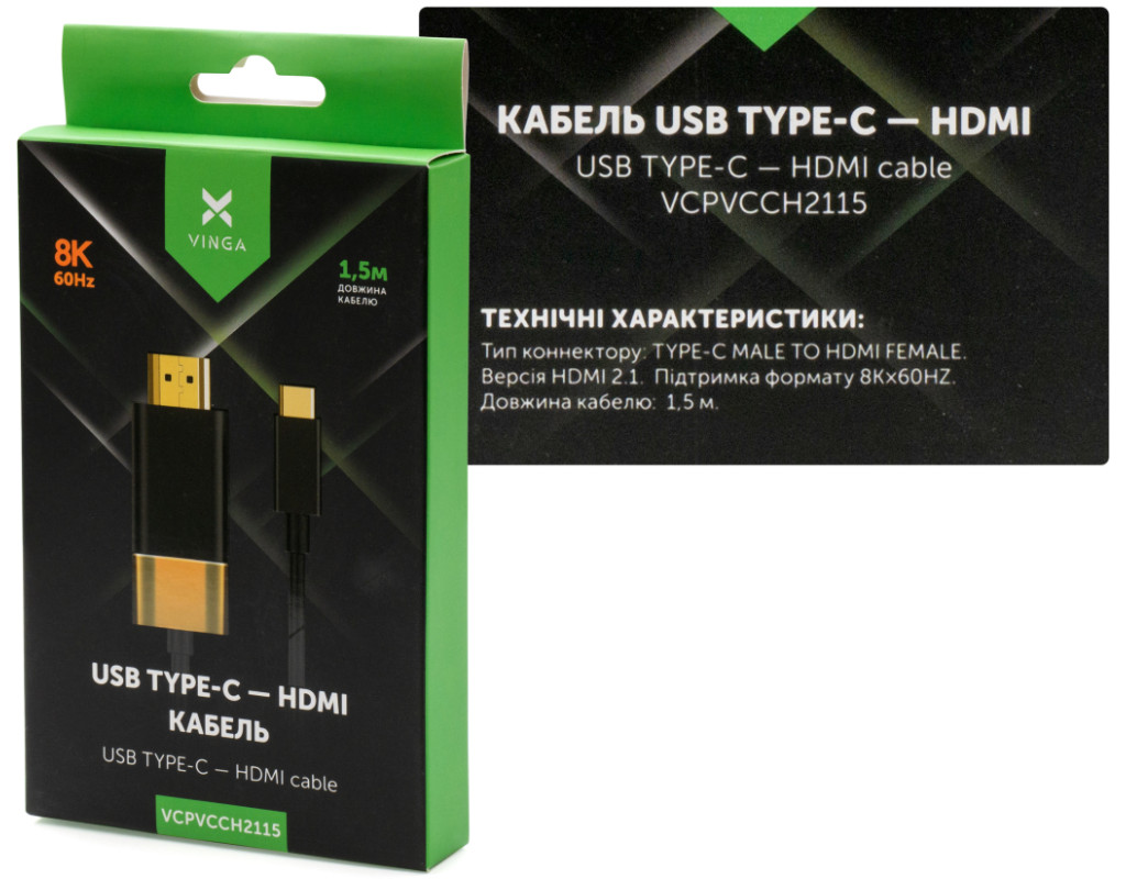 Тип конектора 1 - USB type C, Тип конектора 2 - HDMI, довжина - 1.5 м, Версія HDMI - v. 2.1
