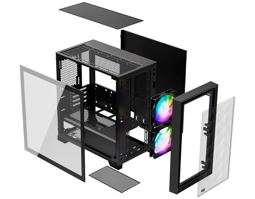 | Корпус для ПК PcCooler C3D310 BK ARGB є ідеальним вибором для геймерів, які прагнуть створити надійну та стильну комп'ютерну систему. Цей корпус належить до висококласної серії від PcCooler, в якій поєднано інноваційний дизайн, функціональність і привабливий зовнішній вигляд. Основу корпусу становить форм-фактор Minitower, що дозволяє комфортно розмістити материнські плати формату Micro-ATX і Mini-ITX. Відзначається конструкція з металевою рамою 0.6 мм, що забезпечує міцність та стабільність під час експлуатації. PcCooler C3D310 підтримує відеокарти довжиною до 350 мм та процесорні кулери заввишки до 165 мм, дозволяючи без проблем укомплектувати потужні комплектуючі. Особливістю корпусу є високоаеродинамічна передня панель з високим повітряним потоком, що підсилює систему охолодження та ефективно відводить тепло. Попередньо встановлені вентилятори ARGB (два розміром 120 мм) створюють не лише потужний потік повітря, але й вражаюче освітлення, яке надає вашій системі унікальності та стилю. Підтримка рідинного охолодження дозволяє встановлення радіатора до 240 мм зверху та 280/240 мм спереду, що відкриває більше можливостей для ентузіастів збірки ПК. Для розміщення накопичувачів передбачено два відсіки 3.5" та три відсіки 2.5", що робить організацію внутрішнього простору максимально зручною та функціональною. Корпус не містить вбудованого блоку живлення, проте дозволяє встановлення блоку живлення довжиною до 200 мм, що гарантує сумісність з різноманітними компонентами. Нижнє розташування блоку живлення забезпечує покращене розподілення ваги та оптимізоване охолодження. Особлива увага приділена системі фільтрації: пиловий фільтр допомагає підтримувати внутрішній простір у чистоті, що подовжує термін служби вашого обладнання. Вікно на бічній панелі дозволяє милуватися красою внутрішньої архітектури та ефектними елементами підсвічування, акцентуючи увагу на унікальних особливостях вашої системи. Зовнішні роз’єми включають 2 x USB 3.0 та 2 x Audio, які забезпечують швидкий доступ і зручність підключення пристроїв. Завдяки продуманій конструкції корпус має достатньо місць для додаткових вентиляторів: ззаду (1x12 см), зверху (2x12/14 см), знизу (2x12 см) і спереду (1x12 см), що дозволяє підлаштувати систему охолодження під ваші потреби. PcCooler C3D310 BK ARGB - це не просто корпус для ПК, а справжній витвір геймерського мистецтва. Вага в 5.4 кг та компактні розміри (220 х 410 х 406 мм) роблять його ідеальним вибором для сучасних користувачів, які цінують якість, функціональність та естетику. Оберіть цей корпус, аби ваш комп'ютер не тільки був потужним, але й виглядав бездоганно. |