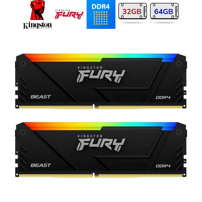 Завдяки стильному радіатору з RGB-підсвічуванням пам'ять Kingston FURY Beast RGB DDR4 має естетичний вигляд, водночас зберігаючи ефективне тепловідведення. Усі модулі пам'яті Kingston FURY Beast RGB DDR4 проходять обов'язкове заводське тестування на заявленій швидкості та забезпечені довічною гарантією.