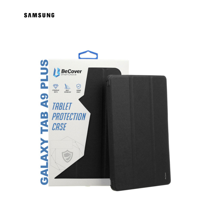 Тип - обкладинка, Сумісність з моделями - Samsung Galaxy Tab A9 Plus, діагональ - 11, Спосіб кріплення - обкладинка, спосіб закриття - магніт, Матеріал - поліуретан, термополіуретан, чорний