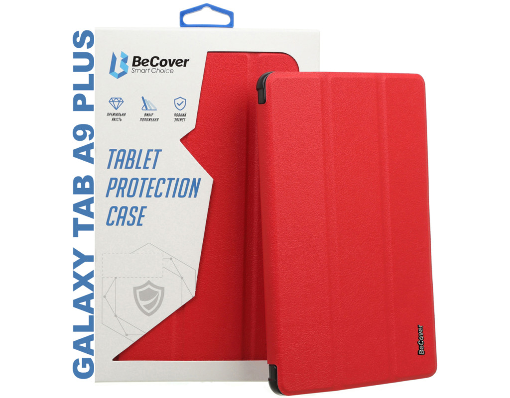 Тип - обкладинка, Сумісність з моделями - Samsung Galaxy Tab A9 Plus, діагональ - 11, Спосіб кріплення - обкладинка, спосіб закриття - магніт, Матеріал - поліуретан, термополіуретан, червоний