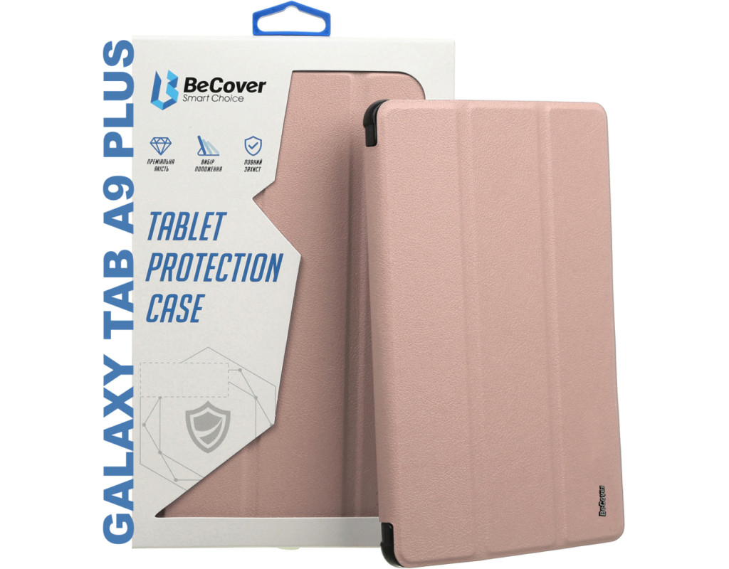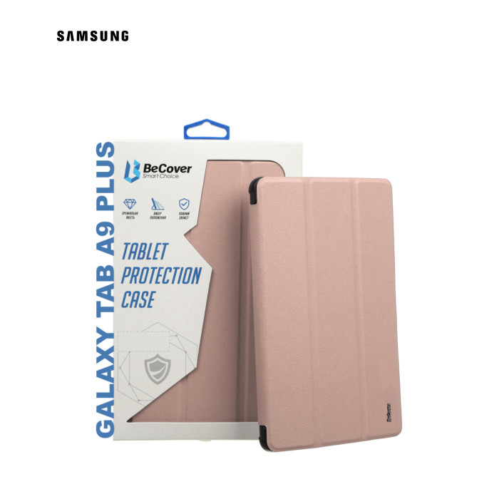 Тип - обкладинка, Сумісність з моделями - Samsung Galaxy Tab A9 Plus, діагональ - 11, Спосіб кріплення - обкладинка, спосіб закриття - магніт, Матеріал - поліуретан, термополіуретан, рожеве золото