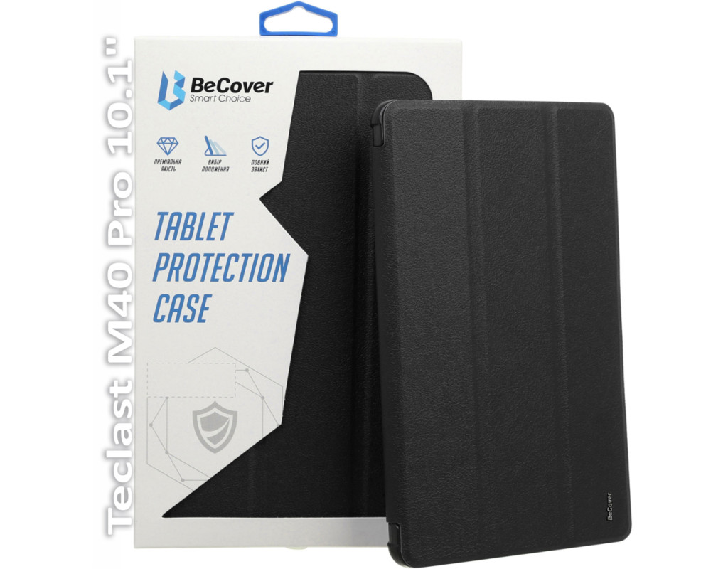 Тип - обкладинка, Сумісність з моделями - Teclast M40 Pro, діагональ - 10.1, Спосіб кріплення - обкладинка, спосіб закриття - магніт, Матеріал - термополіуретан, чорний