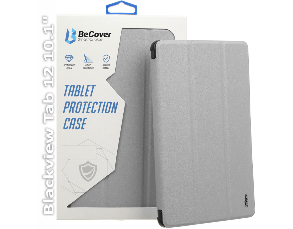 Тип - обкладинка, Сумісність з моделями - Blackview Tab 12, діагональ - 10.1, Спосіб кріплення - обкладинка, спосіб закриття - магніт, Матеріал - поліуретан, термополіуретан, сріблястий