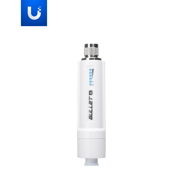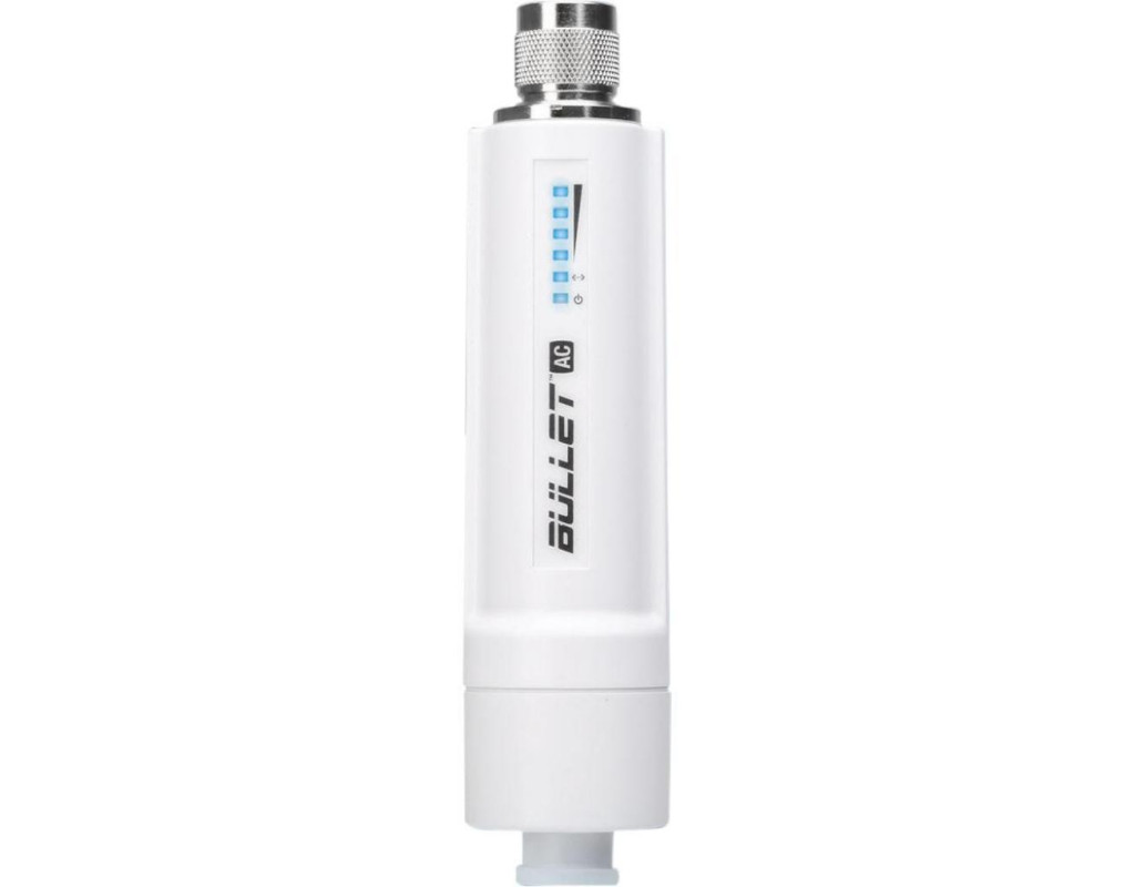 Точка доступу Wi-Fi Ubiquiti B-DB-AC Використовується як для побудови мостів на великі відстані, так і для підключення клієнта до базової станції. Bullet AC двохдіапазонна точка доступу і працює як в спектрі 2.4, так і 5 ГГц, тим самим охоплює широкі діапазони смуг частот, які добре працюють як для коротких, так і для далеких з'єднань. Для побудови лінків і підключення клієнта використовують різні типи антен. Також багато хто використовує точку доступу як базову станцію, підключаючи до Bullet секторну, або всеспрямовану антену. Сфера застосування. Точка доступу може працювати в режимі базової станції і в режимі клієнта, що дозволяє створювати бездротові мережі тільки на обладнанні Bullet ac, при такій схемі мережу дуже стабільно працює, при наявності однотипного обладнання. Для створення мостів і підключення клієнтів використовують параболічні спрямовані антени, для базових станцій використовують всеспрямовані і секторні антени з роз'ємом N-type. Bullet ac не має кріплення, точка доступу безпосередньо кріпиться до гнізда N-type що на антені, також можна використовувати стяжки як додаткове кріплення, якими можна прикріпити його до труби, щогли, або антени. Цього кріплення цілком вистачає, завдяки невеликій вазі і розмірам. Залежно від антени на обладнанні можна створювати бездротові з'єднання на відстані до 50 км. |
