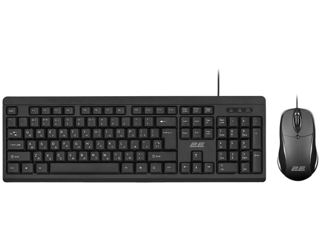 2E MK401 — комплект повнорозмірної клавіатури та симетричної миші. Обидва пристрої провідні та відмінно підходять як для домашнього, так і офісного використання. Клавіатура дуже добре продумана для щоденного користування. Вона не має зайвих кнопок, виступів чи нестандартних форм клавіш. Наявний цифровий та текстовий блок, стандартний набір функціональних кнопок, індикатори натискання клавіш CAPS Lock, SCROLL Lock та NUM Lock. Звична розкладка сприятиме швидкому набору тексту, а мінімальний дизайн впишеться в будь-який робочий простір. Мишка з оптичним світлодіодним сенсором високої точності підійде для всіх сучасних комп'ютерів. Є три клавіші для зручного керування, одна з яких розташована під скролом. Ребриста поверхня коліщатка забезпечує чітке прокручування. Симетрична форма миші дозволяє використовувати її як правою, так і лівою рукою. Під'єднати комплект до комп'ютера можна за допомогою кабелю 1,5 м з USB-роз'ємом. Підготовка пристроїв до роботи не займає багато часу, оскільки інсталяція відбувається автоматично. |