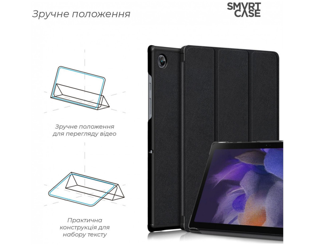 Тип - обкладинка, Сумісність з моделями - Samsung Galaxy Tab A9, Samsung Galaxy Tab A11, Спосіб кріплення - обкладинка, спосіб закриття - магніт, Матеріал - штучна шкіра, пластик, чорний