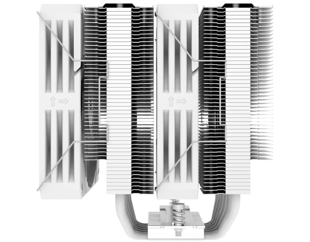 Перевірений радіатор преміум-класу, тепер доступний у повністю білому дизайні, який чудово поєднується з багатьма кольоровими схемами, Подвійні вентилятори регулюють швидкість відповідно до температури ЦП, оптимізуючи ефективність охолодження та зменшуючи шум.