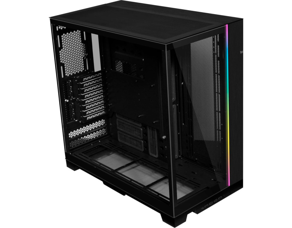 O11 Dynamic Evo XL — корпус для збірки ігрового ПК з яскравою ARGB-підсвіткою. Виріб виготовлений у типорозмірі Full Tower та дозволяє встановлювати материнські плати із формфактором ATX, Micro ATX та ITX. Повністю відкрита нижня панель разом із трьома пиловими фільтрами забезпечує безперебійний потік повітря, ефективно запобігаючи проникненню пилу в корпус. Передню стійку O11D EVO XL можна легко зняти, забезпечуючи безперешкодний огляд для демонстрації обладнання, не впливаючи на структуру корпусу. В O11D EVO XL достатньо місця для розміщення сучасних, потужних і великих компонентів. Також є достатнє охолодження з підтримкою радіаторів. Пропонує кілька легкодоступних місць для встановлення накопичувачів, які підтримують до 7 × SSD або 4 × HDD + 3 × SSD. Дизайн ефектний, виконаний в чорному кольорі. Скляна бокова стінка вдало доповнює стиль корпусу та дасть змогу спостерігати за роботою внутрішніх компонентів системи та контролювати їх стан. Можна буде застосовувати елементи з підсвіткою, щоб удосконалити вигляд системи й зробити його максимально яскравим. Поставляється без вбудованого блока живлення. Продумана вентиляція корпусу буде сприяти його правильному охолодженню та підтримці стабільної температури компонентів. |