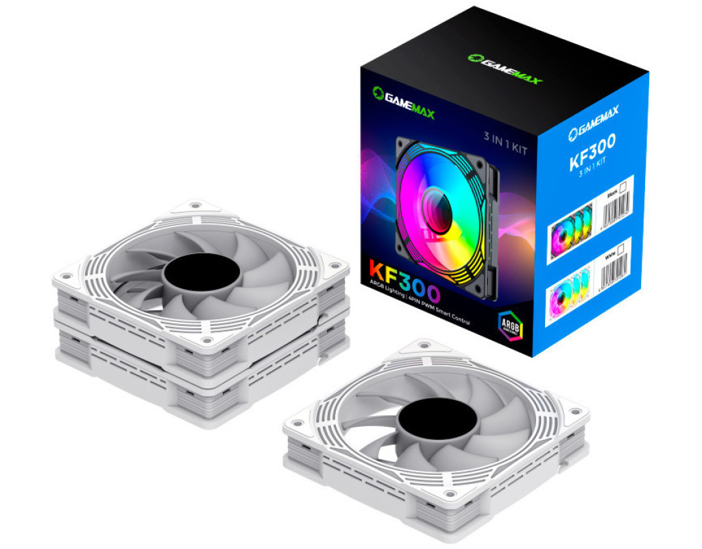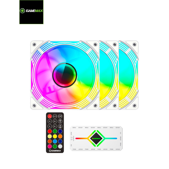 GameMax KF300 - вентилятор 3 в 1 з чорною рамою 120 мм, комплект ARGB HUB Premium V4.0 з бездротовим пультом дистанційного керування - високопродуктивний вентилятор охолодження для корпусу ПК.