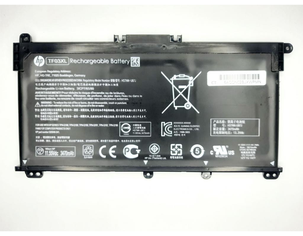 Дана акумуляторна батарея може мати такі маркування (або PartNumber): TF03XL, HSTNN-IB7Y, HSTNN-UB7J, 920046-121, TPN-Q188, TPN-Q189, TPN-Q190, TPN-Q191, TPN-Q192, TPN-Q196 Акумуляторна батарея підходить для наступних моделей ноутбуків: моделэн У зв'язку з динамічно розвиваючимися технологіями і регулярно оновлюваними лінійками ноутбуків, всі вищевказані списки можуть бути не повними. |