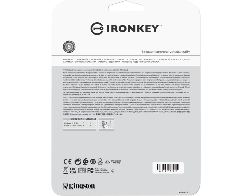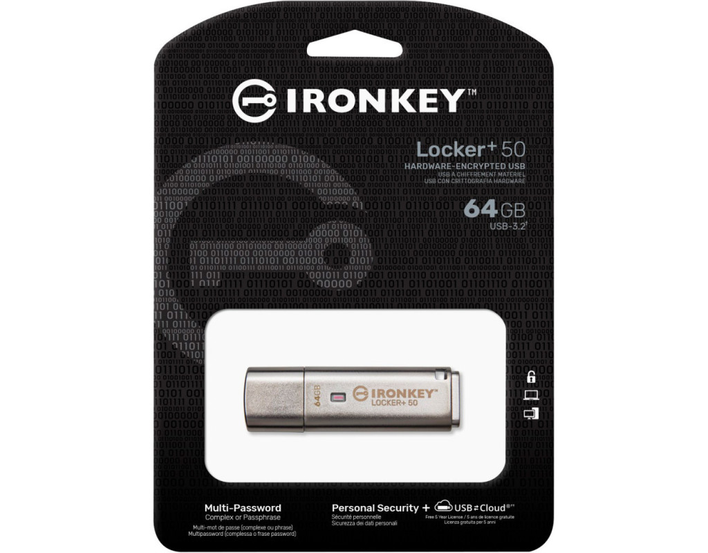 USB флеш-накопичувачі Kingston IronKey™ Locker+ 50 забезпечують безпеку споживацького рівня з апаратним шифруванням AES у режимі XTS, зокрема захист від BadUSB за допомогою мікропрограми з цифровим підписом і від зламу шляхом перебирання паролів. Серія LP50 також відповідає вимогам TAA. Тепер серія LP50 підтримує можливість встановлення кількох паролів (адміністратора й користувача) у режимах складного паролю (Complex mode) або кодової фрази (Passphrase mode). У режимі складного пароля можна створити паролі з 6–16 символів, використовуючи 3 з 4 наборів символів. У новому режимі кодової фрази можна використати цифровий PIN-код, речення, список слів або навіть текст довжиною від 10 до 64 символів. Адміністратор може ввімкнути пароль користувача або, щоб відновити доступ до даних, скинути його. Щоб полегшити введення пароля, можна ввімкнути символ «око» і зробити пароль видимим. Це зменшить кількість помилок, які призводять до невдалих спроб входу. Захист від зламу шляхом перебирання паролів блокує пароль користувача після 10 невдалих спроб введення поспіль і виконує криптографічне стирання накопичувача, якщо 10 разів поспіль буде неправильно введено пароль адміністратора. Крім того, вбудована віртуальна клавіатура захищає паролі від клавіатурних шпигунів і запису дій на екрані. Locker+ 50 має зручний, невеликого розміру металевий корпус із вбудованим кільцем для ключів, завдяки чому дані можна брати куди завгодно. Серія LP50 також має функцію резервного копіювання USBtoCloud (від ClevX®) для доступу до даних на накопичувачі з особистого хмарного сховища через Google Drive™, OneDrive (Microsoft®), Amazon Cloud Drive, Dropbox™ або Box. Серію LP50 легко налаштувати та використовувати, встановлювати додаткові програми не потрібно – необхідне програмне забезпечення для захисту даних вже є на накопичувачі. Пристрої підтримують і Windows® і macOS®, щоб користувачі могли отримувати доступ до файлів у різних системах. |