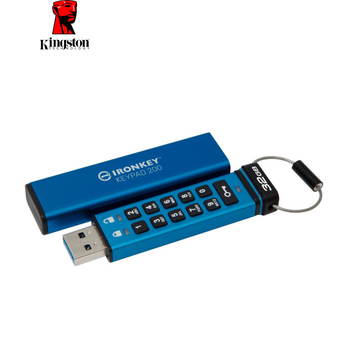 USB флеш накопичувач Kingston 32GB IronKey Keypad 200 AES-256 Encrypted Blue USB 3.2 (IKKP200/32GB)