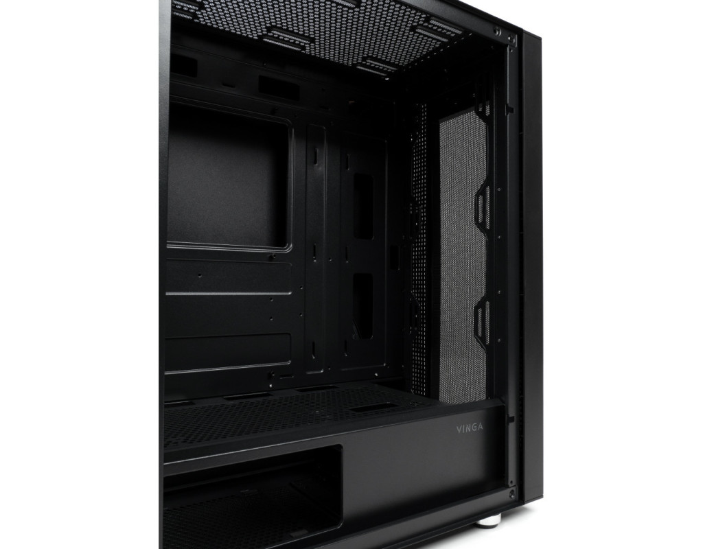 Корпус Vinga Tomcat дозволить сконструювати непоганий геймерський комп'ютер: система вентиляції з вентиляційними гратами забезпечує нормальний температурний режим навіть при повному завантаженні. У корпусу є бічна панель з загартованого скла - вона прозора, тому користувач може побачити, як працює «начинка» корпусу. Місце для блоку живлення знаходиться на дні корпусу, це допомагає погасити вібрацію і зробити рівень шуму нижче навіть при повному навантаженні. На корпусі розташовані кнопки управління живленням і завантаженням системи, а також входи для навушників, USB-порти і входи для мікрофона. Максимально допустимий розмір карт для установки - до 345 мм, максимально прийнятна висота кулера - 163 мм. Геймерський корпус типорозміру Midi Tower має вертикальну установку, блок живлення не передбачений в комплекті. Корпус має 3 внутрішніх відсіків для розширення розмірами від 2.5 дюймів до 3.5 дюймів. Також є 9 слотів розширення. Охолодження здійснюється за допомогою 8 вентиляторів (опціонально), кожен - діаметром 12 см. Для зручності на корпусі розташовано чотири зовнішніх роз'єма, два USB 2.0, один USB 3.0, вхід для навушників і мікрофону. Корпус металевий, з металу товщиною 0.6 мм. Загальні габарити корпусу - 215 x 482 x 410 мм. |