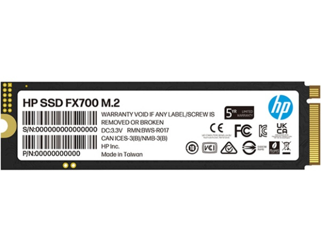 | SSD 1Tb HP FX700 M.2 PCIe 4.0 x4 NVMe 2.0 2280 TLC 3D V-NAND, Retail |
