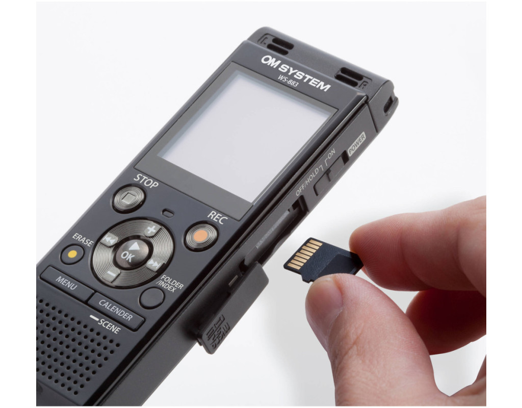| Чудовий стереозапис Om System WS-883 - це компактний, універсальний і зручний стерео диктофон, який ідеально підходить для запису голосових нотаток і розмов. Інноваційний дизайн і передові технології забезпечують незмінно високу якість записів. WS-883 ідеально підходить для студентів та професіоналів. Справжні стереомікрофониДва високоякісних стереомікрофони з діаграмою спрямованості 90° вловлюють кожну деталь промови, інтерв'ю або зустрічі (незалежно від місця розташування мовця). MP3 і лінійний PCMНасолоджуйтесь двома форматами: стерео MP3 для запису розмов і нарад (до 128 кбіт/с) і монофонічний лінійний PCM (22,05 кГц) для запису вашої власної мови з меншим стисненням. Фільтр зменшення шуму (LCF)Фільтр низьких частот ефективно усуває шум нижче 300 Гц, що генерується кондиціонерами, проекторами та фоновими розмовами, забезпечуючи ще більш чистий запис голосу. Інтелектуальний автоматичний режимІнтелектуальний автоматичний режим регулює чутливість мікрофона для забезпечення оптимальної якості запису. У великих приміщеннях він підвищує чутливість, щоб вловлювати мову людей, які знаходяться далі від мікрофона. У невеликих приміщеннях він знижує чутливість, щоб мова на близькій відстані не була занадто гучною. Щоб увімкнути цю функцію, виберіть "Авто" в меню диктофона. Акумуляторна батарея, що дозволяє записувати годинамиДві акумуляторні батареї AAA Ni-MH, що входять до комплекту, дозволяють записувати до 68 годин. Диктофон WS-883 можна зарядити, підключивши його до ПК або Mac. Акумуляторні батареї AAA Ni-MH можна замінити лужними батареями AAA для запису до 110 годин. Легке керування завдяки інтуїтивно зрозумілому менюВід вбудованого USB-роз'єму до сюжетних режимів. Серія WS була розроблена з думкою про простоту. Вбудований USB-роз'ємЗавдяки вбудованому USB-роз'єму ви можете легко і зручно зберігати свої дані. Перенесіть записи з диктофона на зовнішній жорсткий диск або використовуйте диктофон як USB-накопичувач, щоб перенести на нього документи. Простий режимЗавдяки двом режимам дисплея диктофон WS простий у використанні навіть для початківців. У простому режимі відображається тільки найважливіша інформація (великим шрифтом), а меню містить тільки найбільш часто використовувані функції. Досвідчені користувачі можуть використовувати всі функції в простому режимі. Вибір сцениЗавдяки вбудованим сюжетним режимам ваш диктофон WS-883 автоматично підлаштовує налаштування для отримання найкращих результатів у різних ситуаціях. Наприклад, виберіть режим "Диктування", "Нарада", "Конференція" або "Запис телефонних розмов". Режим автоматичного індексуванняУвімкнувши автоіндексацію, диктофон автоматично додає маркери в точках, де рівень звуку падає нижче встановленого значення більш ніж на 3 хвилини, і в точках, де він знову повертається вище цього рівня. Це дає змогу легко пропускати тихі частини файлу під час відтворення, шукаючи нові маркери. Індексні маркери також можна додавати вручну (до 99 в одному записі). Інтуїтивно зрозумілий дизайн з вбудованою підставкоюЗавдяки простому розташуванню кнопок, чіткому 1,6-дюймовому екрану та фронтальному динаміку, диктофони серії WS не можуть бути простішими у використанні. Вбудована підставка робить використання на робочому столі ще простішим, допомагаючи знизити рівень шуму і досягти відмінної якості запису. Слухайте з л