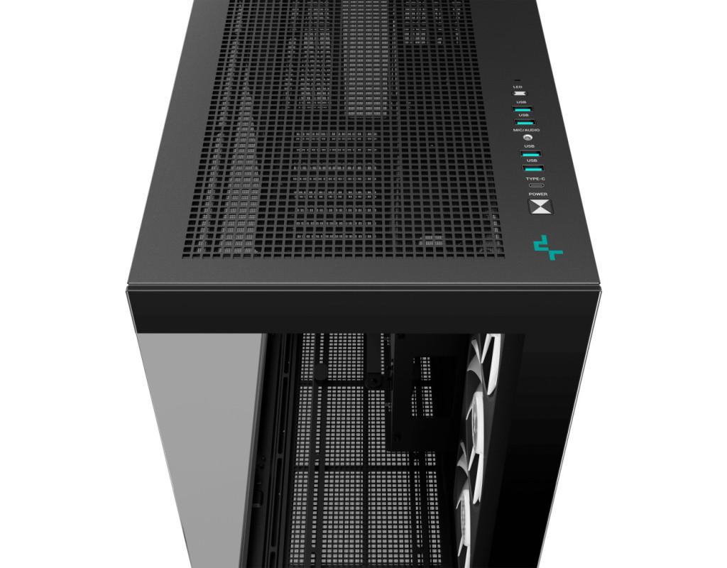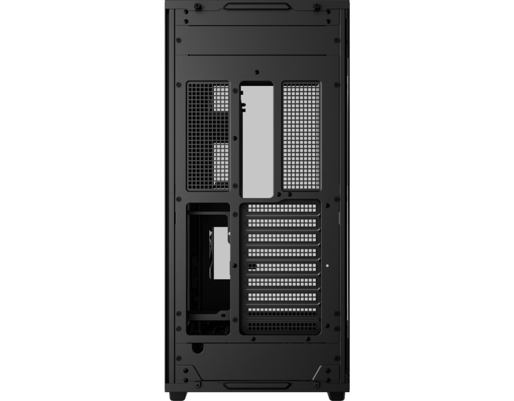вікно на бічній панелі, з вертикальним встановленням відеокарти, з пиловим фільтром, з підсвічуванням, знімний кошик для HDD, отвори для рідинного охолодження, отвори для укладання кабелів |