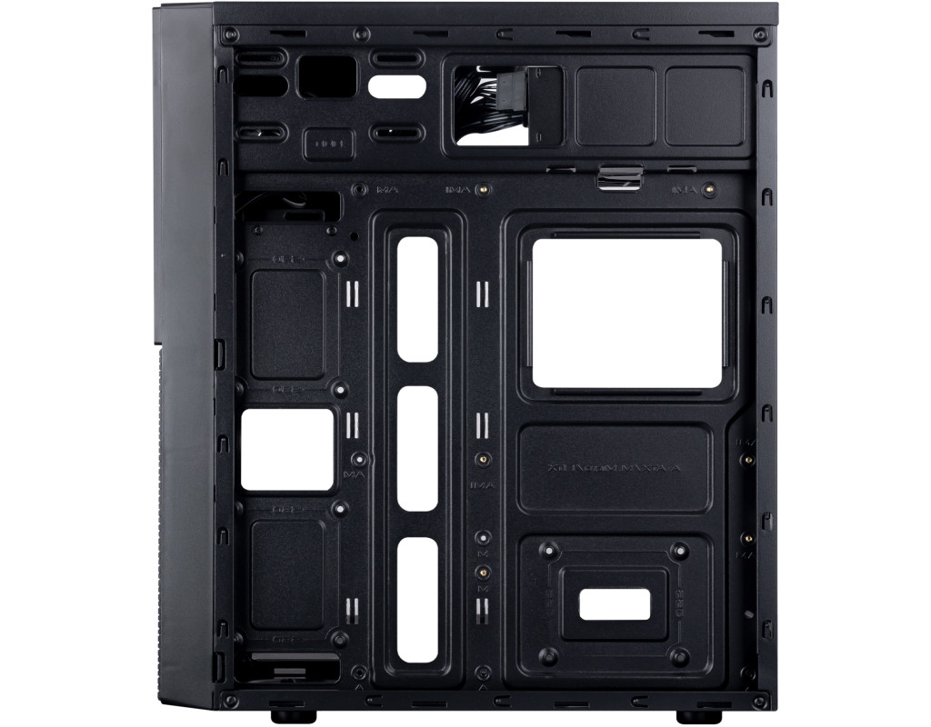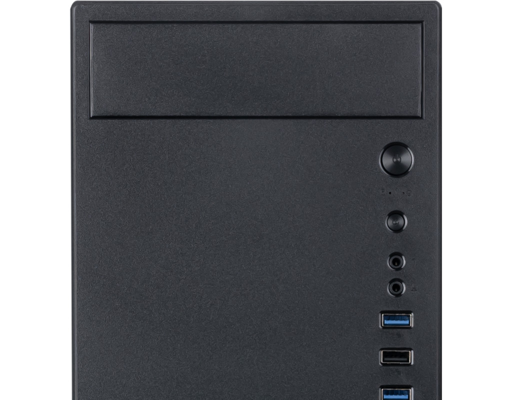Виготовлений з листового металу завтовшки 0,4 мм, що надійно захищає компоненти від зовнішніх впливів. Бюджетна модель формату Miditower не займає зайвий простір і досить містка для монтажу всіх необхідних комплектуючих. Класичний дизайн елегантного чорного корпусу з сітковою перфорацією на бічній та фронтальній панелях, що забезпечує відмінну вентиляцію всередині корпуса. Два USB-порти 3.0 і роз’єм для під’єднання аудіогарнітури зручно розташовані на фасаді. Біля верхньої стінки корпусу вмонтовано фірмовий блок живлення потужністю 450 Вт. |