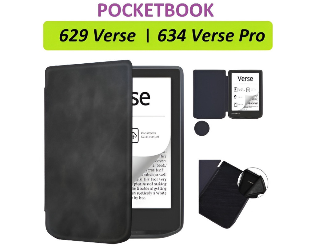 Колір - чорний, штучна шкіра, Сумісність - PocketBook 629 Verse, PocketBook 634 Verse Pro, обкладинка, Спосіб кріплення - обкладинка