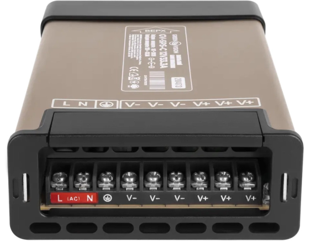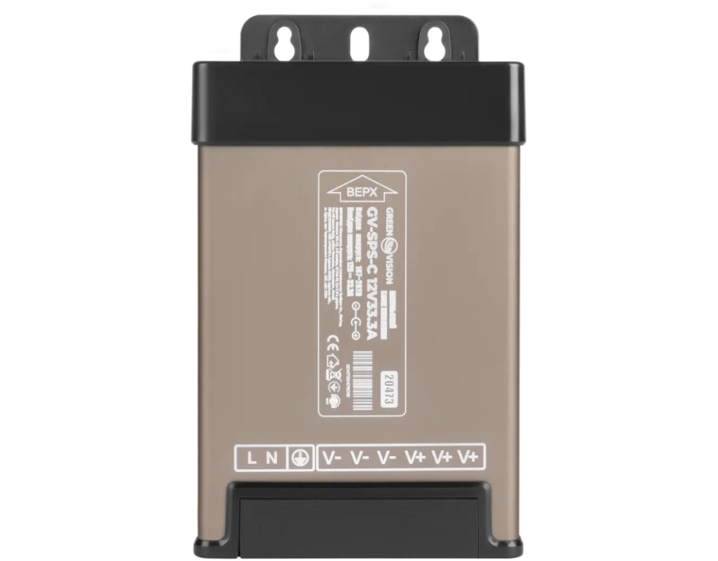 Блок живлення GV-SPS-C 12V 33.3A імпульсний має вхід: ~220В, вихід: 12В/33.3А (400W) з регулятором вихідної напруги.