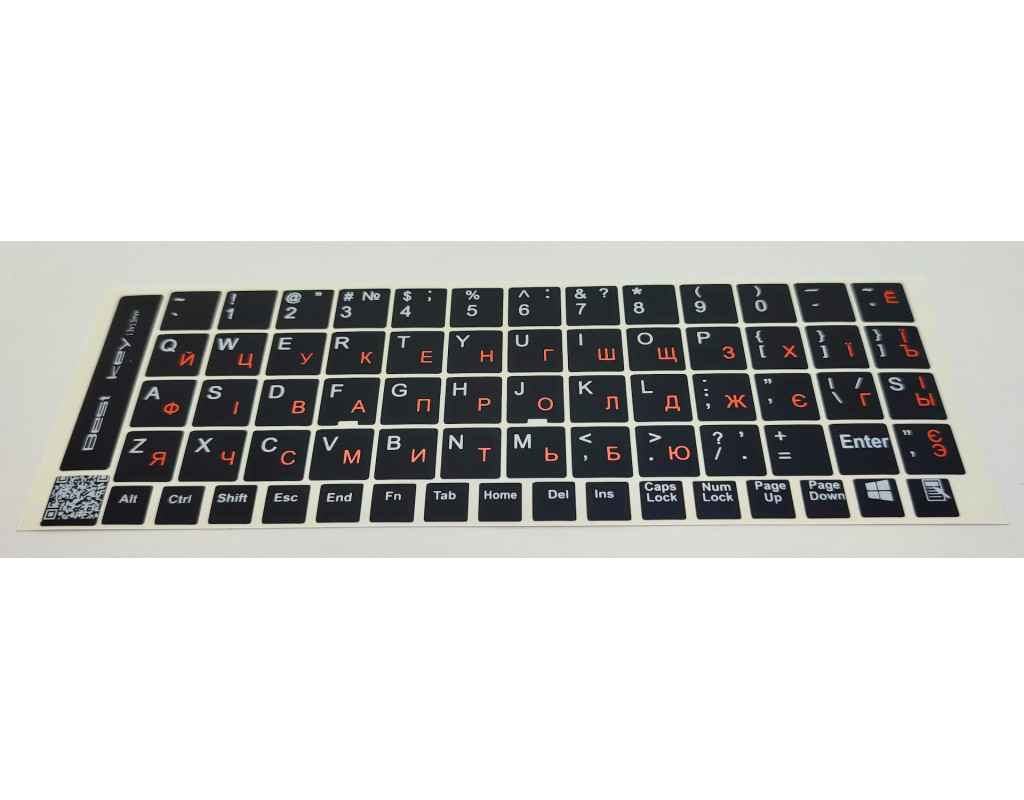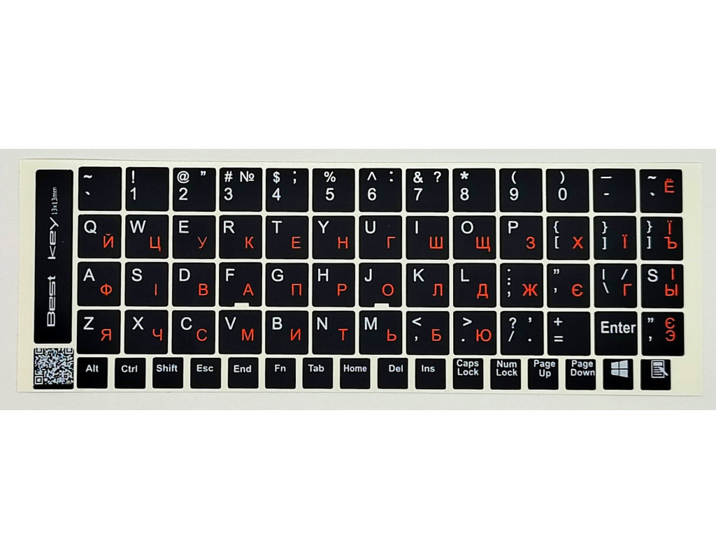 Наклейка на клавіатуру Best key універсальна 13х13мм. Наклейка на клавіатуру універсальна непрозора. Виготовлена по спеціальній технології яка забезпечує не стирання літер. Основа матова схожа з пластиком клавіш. Підходить для клавіатур з Point Stick. В наклейках є 76 клавіші розміром 13х13 мм. які виготовлені з м’якої ПВХ плівки. |