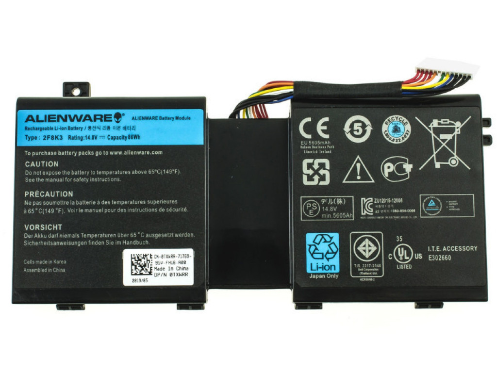 Акумулятор до ноутбука Dell Alienware 17 R5 2F8K3, 86Wh (5605mAh), 4cell, 14.8V, Li-ion (A47841)