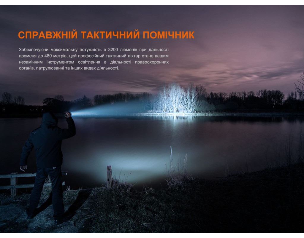 Ліхтар Fenix TK22R, націлений на застосування в тактичних і службових завданнях, коли від надійності джерела освітлення залежить успіх місії, що виконується. Характеристики освітлення моделі вражають: її максимальна яскравість становить 3200 люмен, а дальність променя досягає майже півкілометра (480 метрів). Холодний білий промінь (6500К), який генерується світлодіодом Luminus SST70, підхожий для точкового освітлення невеликої площі, чому також сприяє гладкий металевий рефлектор. Ліхтар сумісний з безліччю фірмових аксесуарів, що розширюють функціональність пристрою та підвищують зручність експлуатації. Серед них: кріплення ALG-00, ALG-15, ALG-16, виносна тактична кнопка AER-05 V2.0, кріплення для виносної кнопки ALG-05 та ALG-06, дифузійний фільтр AOD-M, світлофільтр AOF-L, сигнальний жезл AOT-L. З урахуванням можливості фіксації моделі на зброї, в ній передбачено захист від віддачі під час пострілу, тому ліхтар також можна використовувати як мисливський. Режими роботиІнтерфейс включає 2 групи режимів: тактичну з двома варіантами світла та службову з чотирма режимами. Стробоскоп також входить до переліку. За допомогою цього режиму можна миттєво дезорієнтувати супротивника, а в рядових ситуаціях — подати світлові сигнали. Тактична група