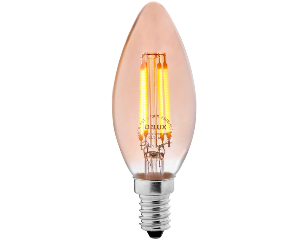 Тип лампи - філаментні, тип цоколя - E14, Потужність - 4 Вт, колірна температура - 2700 К, 220-240 В, Особливості - енергоефективність 80% (A +), Висота - 95 мм