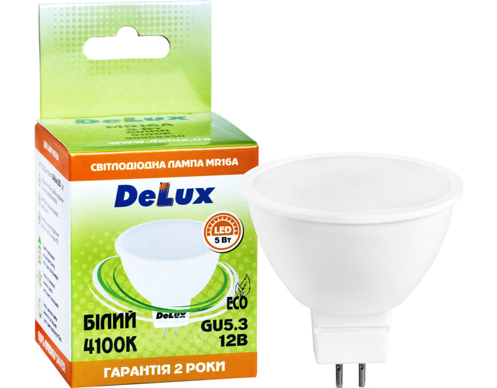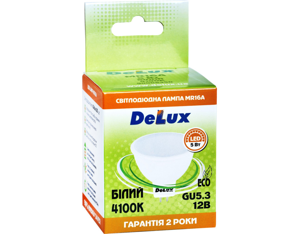 Delux LED MR16A 7Вт 4100K 12В GU5.3 (90021252) — це світлодіодна лампа з нейтральним білим світлом (4100K), що працює при низькому напрузі 12В. Основні характеристики: