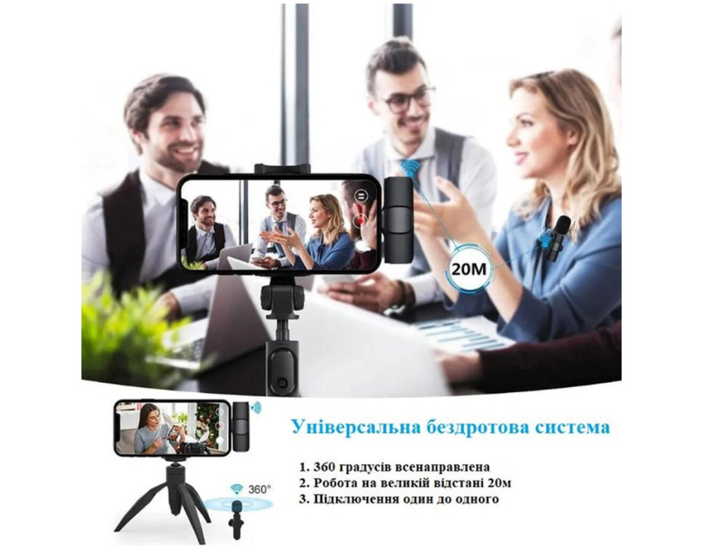 - Дана система радіо мікрофона складається з приймача (ресивера), що підключається до смартфону і мікрофона петлички з передавачем, що закріплюється на одязі. Дальність зв'язку по радіоканалу становить до 20 метрів при прямій видимості, тому ви зможете використовувати цей радіомікрофон як у приміщенні, так і на вулиці; Щоб розпочати запис, його достатньо підключити до телефону;