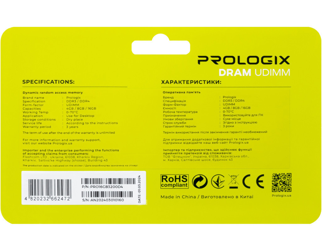 ProLogix DDR4 — оперативна пам'ять місткістю 16 ГБ, за допомогою якої ви зможете підвищити продуктивність як ігрової, так і робочої систем. Вона надійна та довговічна, адже побудована на основі високоякісних компонентів. Модулі оперативної пам’яті Prologix ретельно розроблені та протестовані для забезпечення стабільної та надійної роботи ПК, тому гарантують швидке та ефективне виконання завдань навіть у вимогливих умовах. Вони призначені для модернізації та підвищення продуктивності, забезпечують високу стабільність на новітніх ігрових системах. Розширте можливості вашого обладнання за допомогою модулів пам’яті від Prologix і насолоджуйтесь швидкістю та ефективністю вашого комп’ютера. |