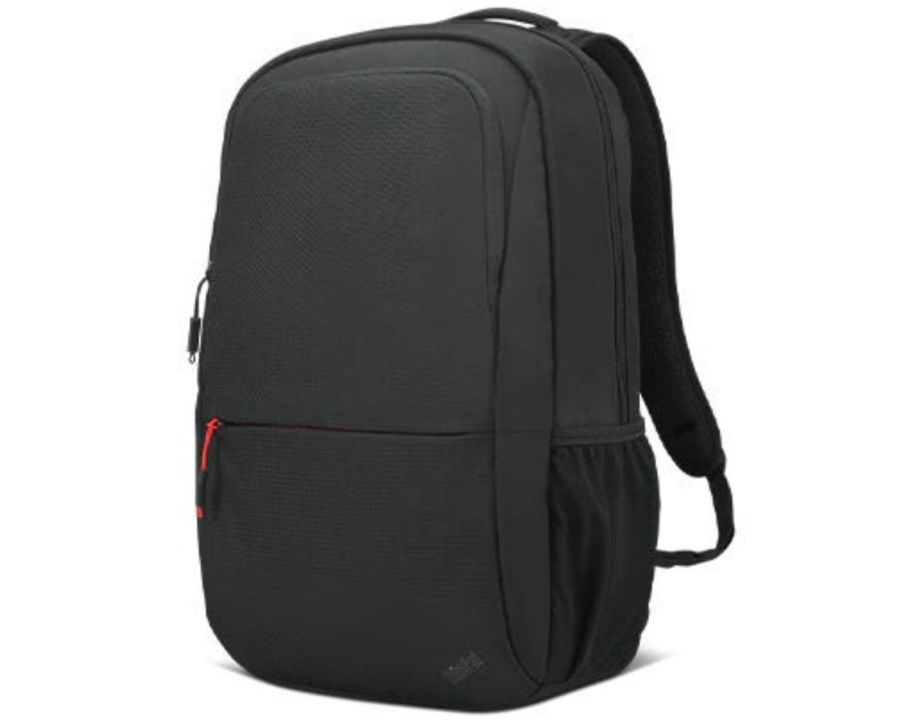 Бічна кишеня ThinkPad Essential 16-inch Backpack Eco призначена для пляшки води. У передніх кишенях на блискавці зберігай мишу та килимок для неї, перехідники, дрібне канцелярське приладдя, навушники, блокнот.