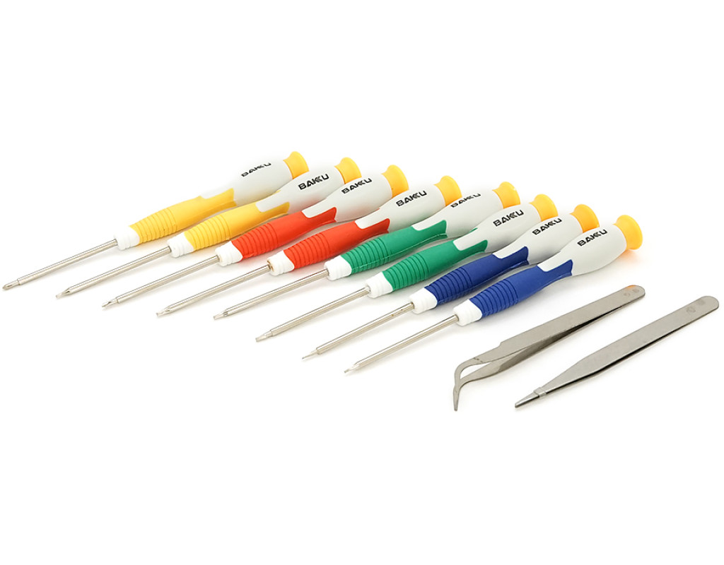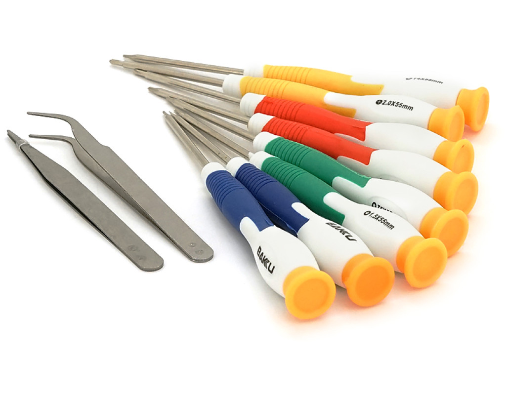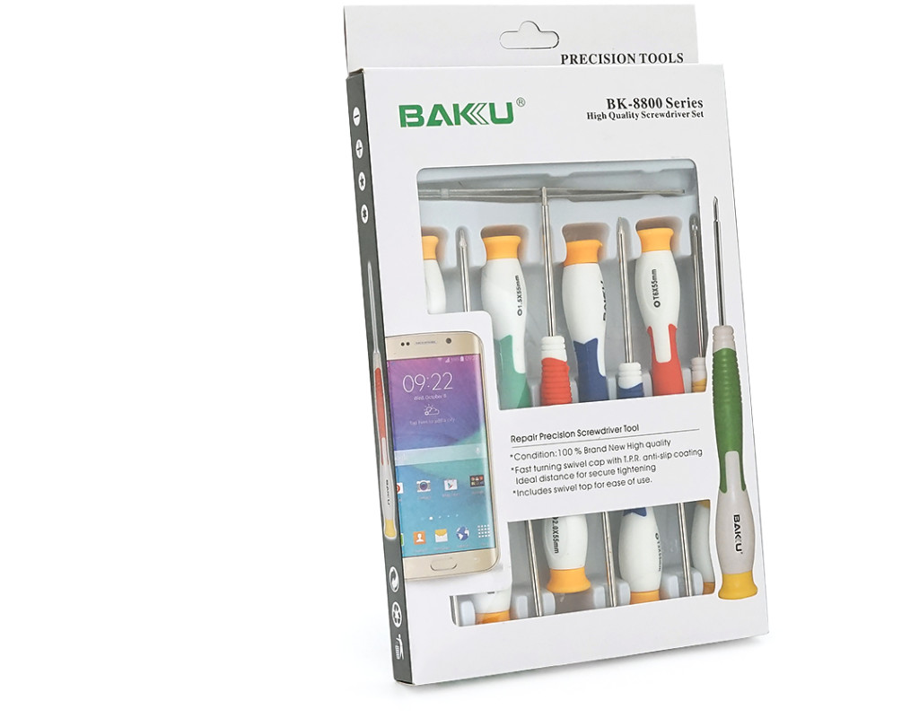 | Набір інструментів BAKKU BK-8800 – складається з 10 предметів, які забезпечать якісні точні роботи з ремонту гаджетів та пристроїв з дуже маленькими болтиками. На кожен маленький болтик у наборі є викрутка, тому майстер на два рази впорається з будь-якими завданнями. У наборі: • 8 викруток: Т3*55мм, Т4*55мм, Т5*55мм, Т6*55мм, Т7*55мм, 2,0*55мм, 1,5*55мм та ін. • 2 пінцети; прямий та вигнутий Характеристики: • матеріал – пластик / метал • рукоятка викруток із прогумованими вставками • упаковка – коробка • кількість в упаковці – 6 шт. |