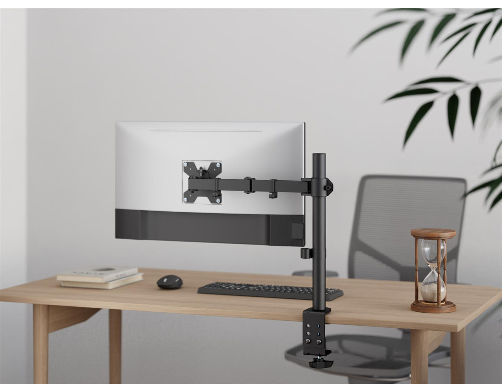 | Завдяки міцній сталевій конструкції MA101 забезпечує стабільну підтримку одного монітора від 17 до 32 дюймів вагою до 9 кг (19,8 фунтів). Гнучка конструкція для широких налаштувань та кутів огляду, що регулюються для портретної або альбомної орієнтації. Знімна пластина VESA для зручного встановлення. Затискачі для кабелю в комплекті для робочого місця безладно. |