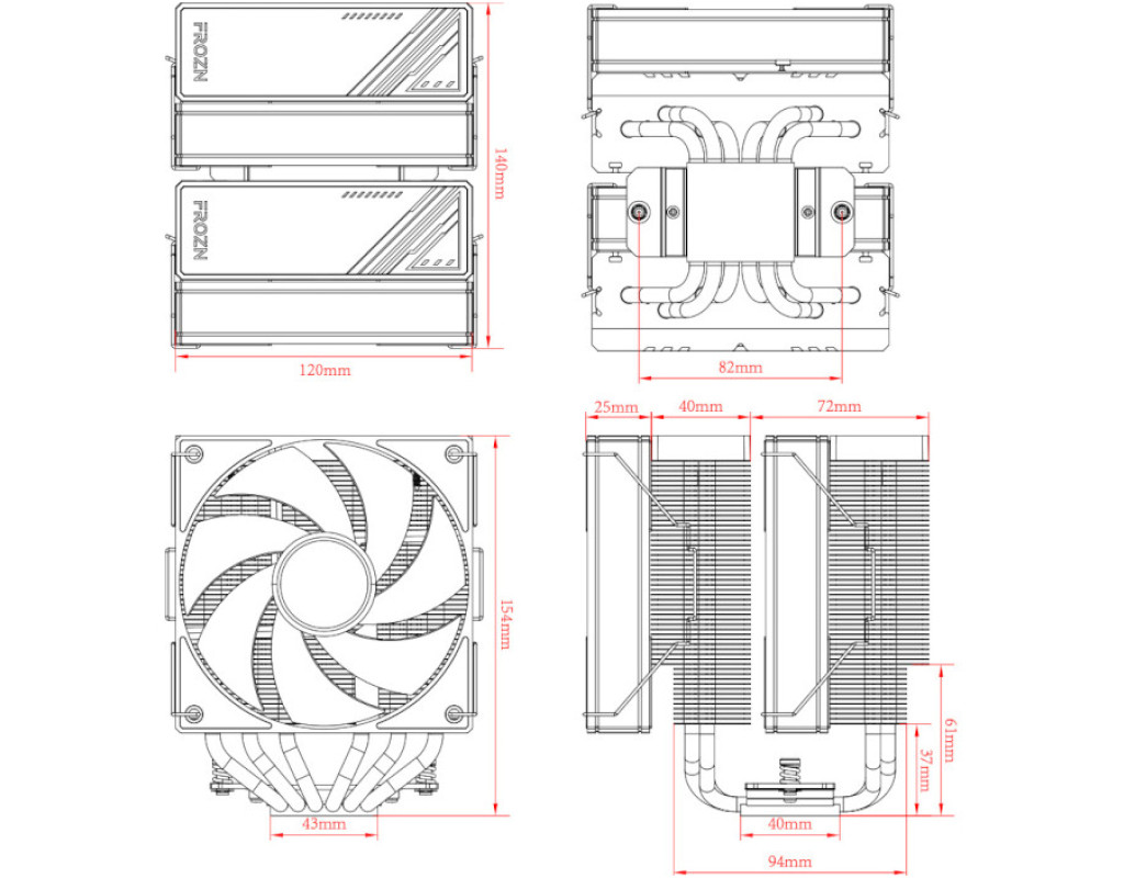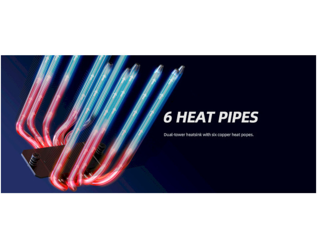 Для процесорів - INTEL, AMD, сокет - AM4, AM5, 1150, 1151, 1155, 1156, 1200, 1700, матеріал радіатора - алюміній, діаметр вентиляторів - 120 мм, Максимальна частота обертів - 2000 об/хв, Тип підшипників - гідравлічний, рівень шуму - 29.9 dB, роз'єми живлення - 4-pin PWM, Підсвічування - немає, 6 теплових труб