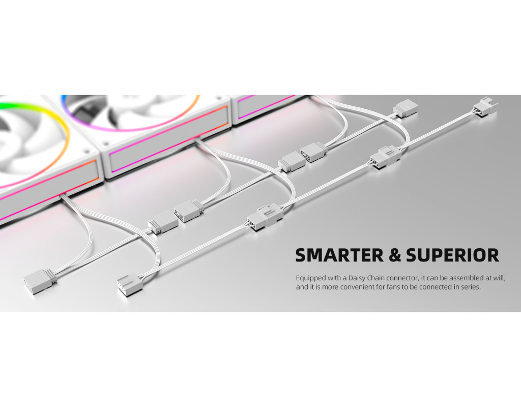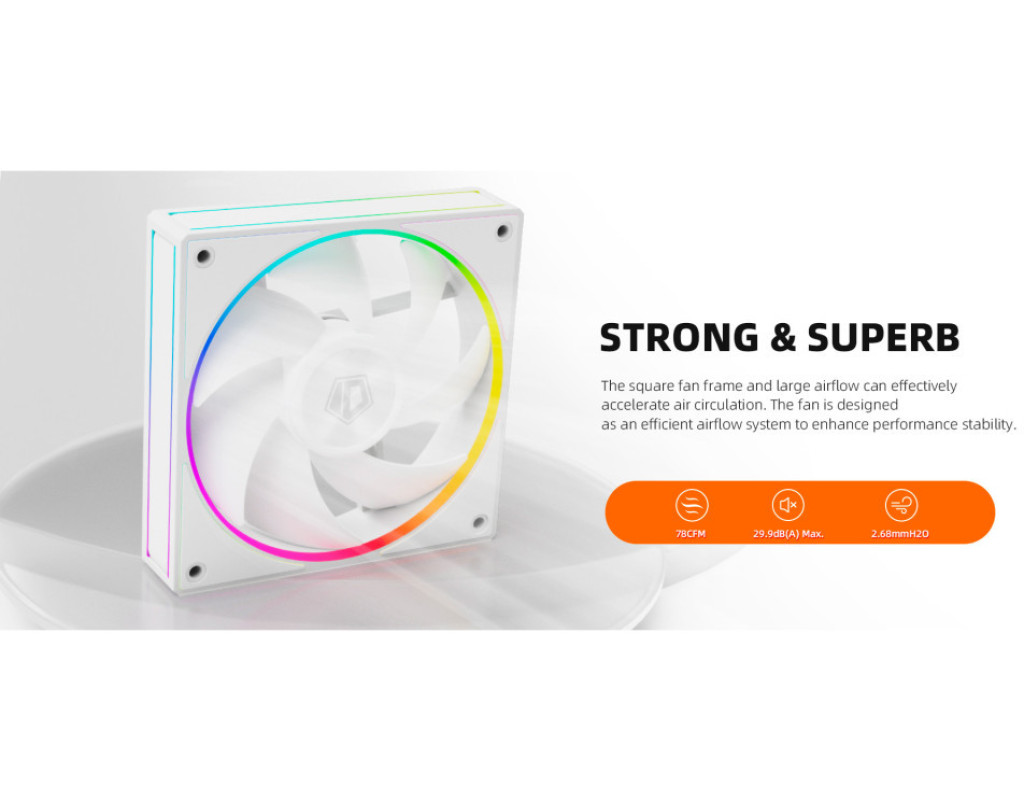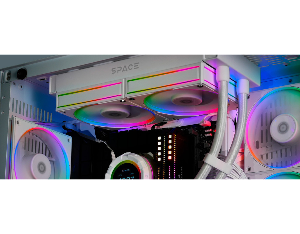 Кількість вентиляторів - 3, діаметр вентиляторів - 120 мм, тип підшипника - гідродинамічний підшипник, 2000RPM, тип роз'єму підключення - 3-pin, 4-pin, Підсвітка - різнокольорова, рівень шуму - 29.9 дБ