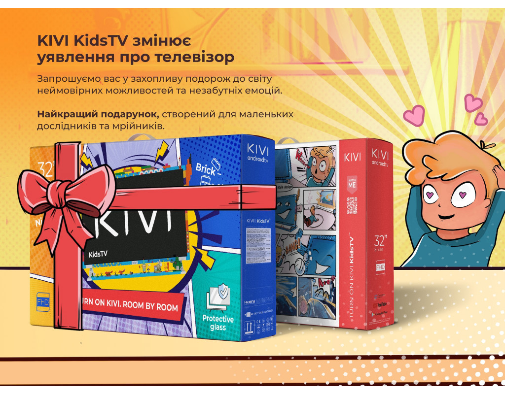 | ТБ KIVI KidsTV розроблений спеціально для дитячої кімнати. Дайте волю уяві та подаруйте дитині нескінченні розваги!