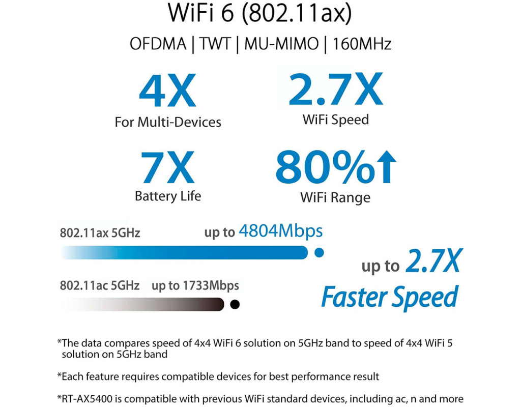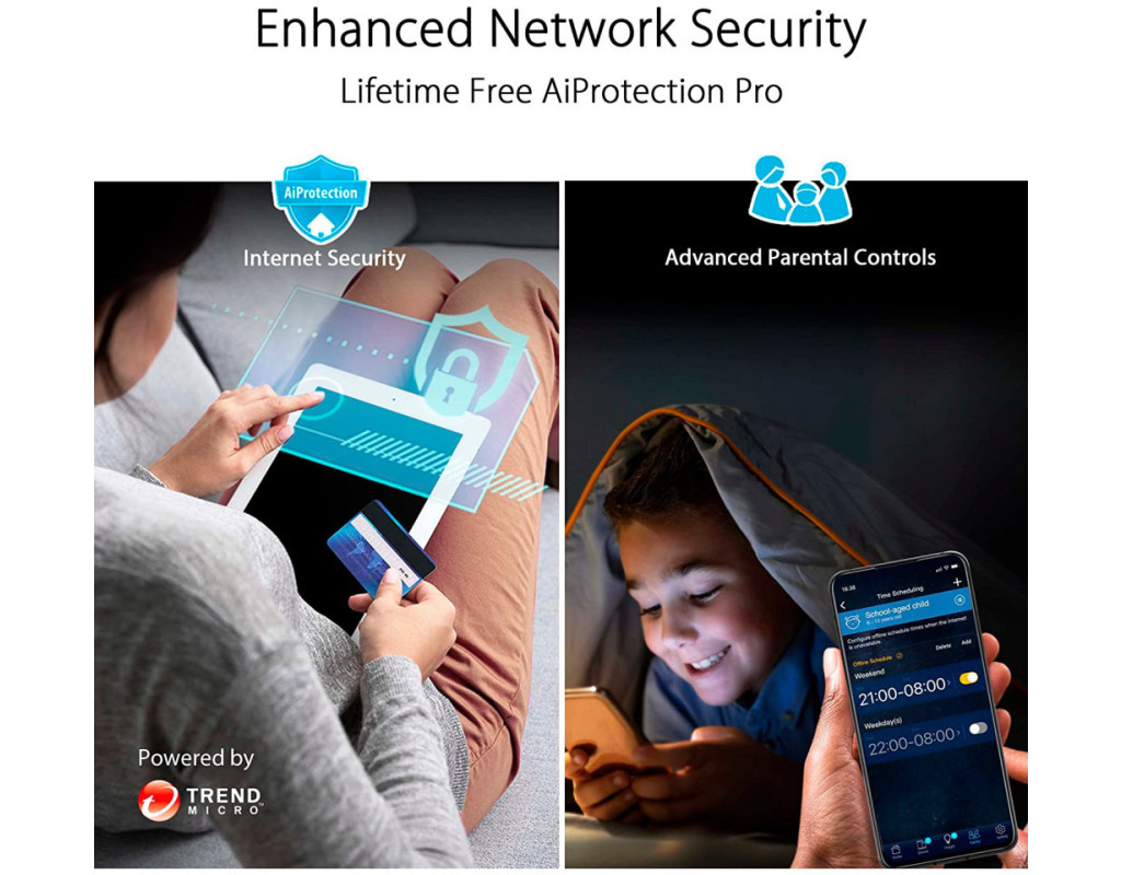 Відмінна швидкість, надійне з’єднання Завдяки вбудованому комплексному VPN-захисту, який забезпечується сучасними технологіями безпеки ASUS, маршрутизатор RT-AX5400 перевершить усі ваші очікування і стане ідеальним помічником у роботі з наявними WiFi-пристроями. Безпрецедентна швидкість Маршрутизатор RT-AX5400 працює за стандартом Wi-Fi 6, забезпечуючи швидкий і стабільний доступ до Інтернету для зростаючої кількості розумних пристроїв у вашому домі. Завдяки підвищеній швидкодії, ефективності та пропускній здатності ви зможете під'єднати до мережі стільки пристроїв, скільки вам необхідно, насолоджуючись найвищою швидкістю Wi-Fi. Безпечний перегляд вебсторінок Інтернет може містити неприйнятний вміст, нав’язливу рекламу, а також інший контент, який може мати ризики для безпеки. Функція ASUS Safe Browsing допомагає блокувати небажаний вміст в один дотик до екрана смартфона, додаткові програми для цього не потрібні. Фільтрація на основі DNS не вплине на продуктивність маршрутизатора. Існує навіть можливість фільтрувати відвертий вміст в результатах пошуку, щоб захистити дітей, які користуються Інтернетом. Захист у загальнодоступних мережах Wi-Fi з Instant Guard Загальнодоступні мережі Wi-Fi, які зустрічаються в кафе, готелях, аеропортах та інших громадських місцях, рідко бувають захищеними, тому хакери можуть легко перехопити дані, які ви відправляєте в них під час підключення до Інтернету. Де б ви не були, технологія ASUS Instant Guard забезпечує безпечний доступ до Інтернету за допомогою маршрутизатора RT-AX5400. Наш оновлений застосунок дозволяє легко ділитися цим мережевим з’єднанням зі своєю родиною та друзями за допомогою URL-посилання. Комплексний захист домашньої мережі Окрім підтримки найновішого протоколу безпеки WPA3, ASUS RT-AX5400 містить у собі систему інформаційної безпеки AiProtection Pro на основі розробок компанії Trend Micro, яка забезпечує захист від інтернет-загроз для всіх підключених до неї пристроїв. Зручні засоби батьківського контролю Отримуйте дані про активність своїх неповнолітніх дітей в Інтернеті та налаштовуйте окремі параметри для різних вікових груп за допомогою надійних засобів батьківського контролю RT-AX5400. Ви також можете швидко створювати розклад доступу до Інтернету й надавати додатковий час онлайн для своєї малечі, щоб винагородити їх за хорошу поведінку. Вибирайте VPN Насолоджуйтесь безпечним і швидким підключенням для потокових трансляцій, ігор та інших завдань за допомогою маршрутизатора ASUS RT-AX5400 і VPN-з’єднання. За допомогою програми ASUS Router для мобільних пристроїв і вебінтерфейсу ви можете легко налаштувати VPN-з’єднання, зокрема з використанням протоколів OpenVPN і WireGuard, щоб вони відповідали вашим вимогам. Зашифроване віддалене підключення Маршрутизатор ASUS RT-AX5400 дає змогу віддаленим працівникам безпечно отримувати доступ до корпоративних мереж без необхідності встановлювати програмне забезпечення для VPN на кожному пристрої. Ви можете створювати різні типи VPN-з’єднаннь, зокрема PPTP, L2TP, OpenVPN і WireGuard. За допомогою VPN Fusion також можна призначати різні пристрої до різних тунелів VPN, одночасно зберігаючи звичайне підключення до Інтернету для регулярного використання. Зручне керування параметрами мережі Щоб легко налаштувати маршрутизатор RT-AX5400 та керувати мережею, пропонується інтуїтивно зрозумілий застосунок ASUS Router для мобільних прис
