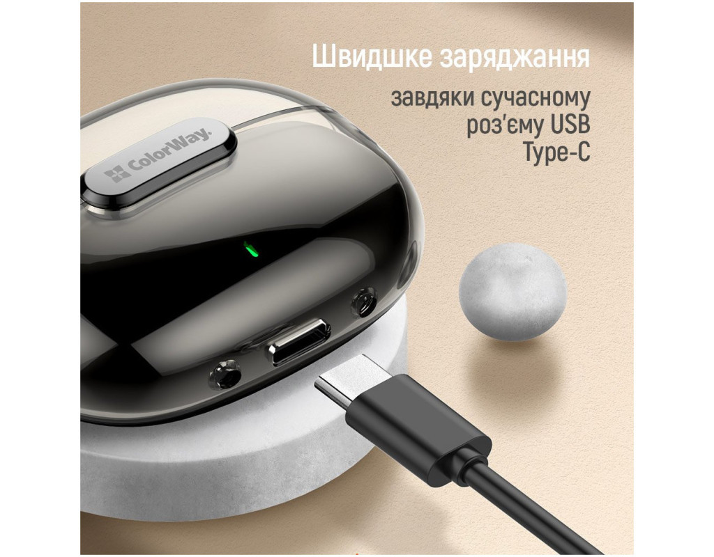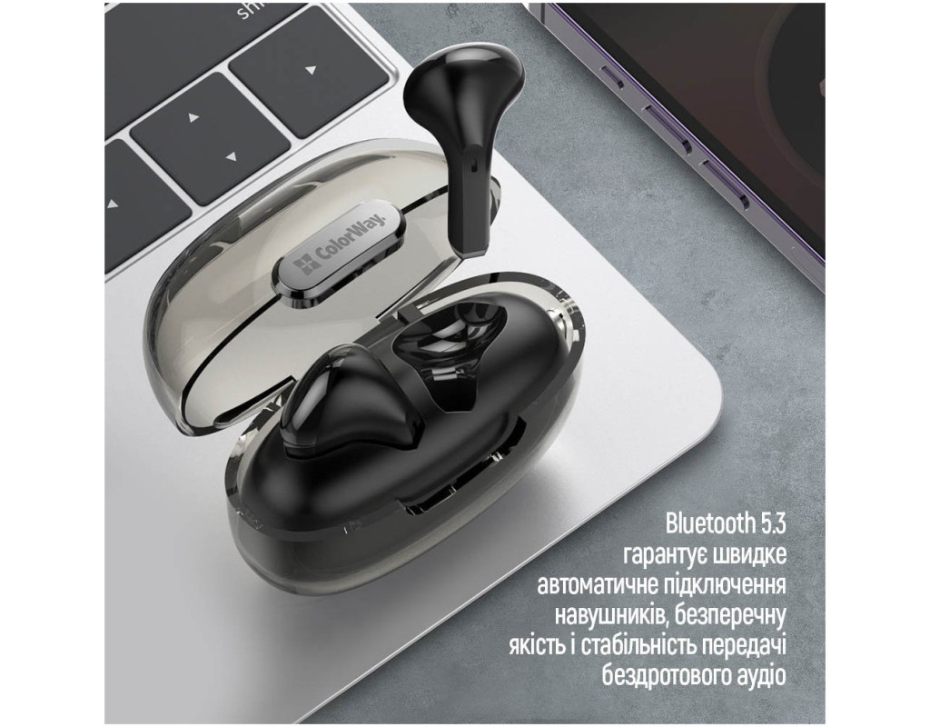 ColorWay бездротові навушники-гарнітура призначені для безперешкодного прослуховування аудіо та забезпечення зручності під час голосового зв'язку на мобільних пристроях, таких як смартфони, планшети та комп'ютери. Ці навушники забезпечують комфорт та мобільність, дозволяючи користувачеві вільно рухатися, не обтяженим дротами. Надійна посадка та комфорт під час використання роблять їх ідеальними для тривалого використання. Вони повністю сумісні з усіма пристроями, які підтримують технологію Bluetooth, незалежно від виробника або операційної системи. Навушники використовують передову версію Bluetooth 5.3, забезпечуючи швидке підключення, бездоганну якість та стабільність передачі аудіосигналу, а також покращену енергоефективність. Зарядження стало ще швидшим завдяки сучасному роз'єму зарядного пристрою USB Type-C. Крім того, навушники дозволяють керувати музикою та гучністю безпосередньо з них, надаючи користувачеві зручний доступ до управління аудіопрогравачем. |