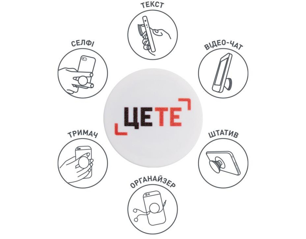 Функціонує як зручна підставка, завдяки якій ви можете переглядати відео. Використовуйте, як штатив для найкращих селфі або відео-конференції. Надійна липучка 3М приклеюється до більшості пристроїв та чохлів. Розміри: діаметр 39,74 мм х 7 мм і 24,25 мм в розкладеному вигляді. |