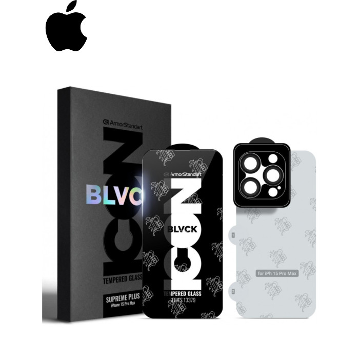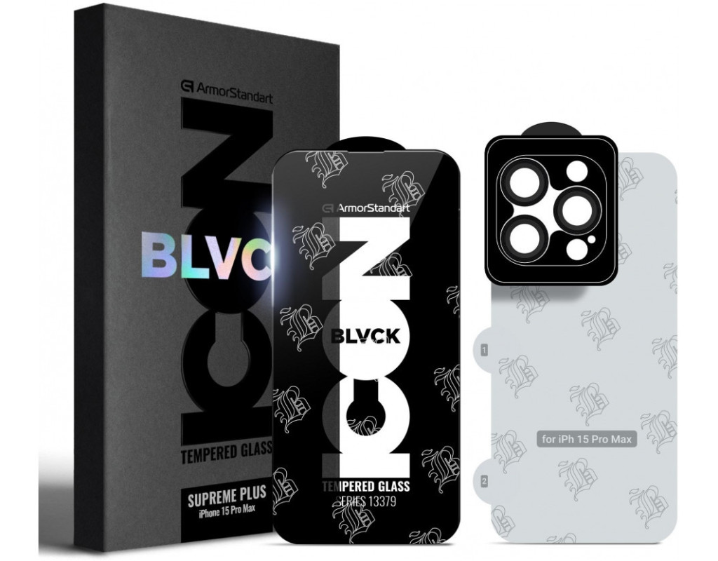 Скло захисне Armorstandart Supreme Set Black Icon Apple iPhone 15 Pro Max (ARM74188)