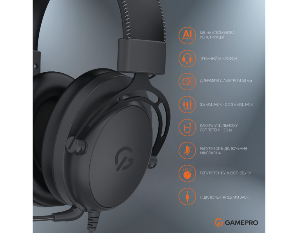 геймерські (ігрові), дротове, Jack 3.5 мм, закриті, Випромінювач - 53 мм, 32 Ом, чутливість - 114 дБ, 20 - 20000 Гц, тип випромінювача - динамічний, з мікрофоном, Спрямованість мікрофона - всеспрямований, Матеріал амбушур - шкірозамінник, довжина шнура - 2 м, кількість jack(ів) - 1, 2, кількість PIN (контактів) - 4, Black, 370 г