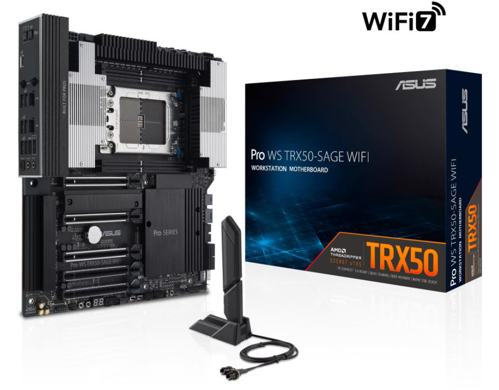 | Материнська плата Pro WS TRX50-SAGE WIFI пропонує елітну швидкість, сумісність і стабільність, які ідеально підходять для створення контенту, розробки програмного забезпечення, машинного навчання тощо. Тридцять шість ступенів потужності живлять процесори AMD Ryzen Threadripper PRO 7000 WX і AMD Ryzen Threadripper 7000 серії з 96 ядрами, підтримуючи до 1 ТБ модулів R-DIMM DDR5, забезпечуючи потенціал продуктивності, необхідний професіоналам для роботи з найсучаснішими програмами. |