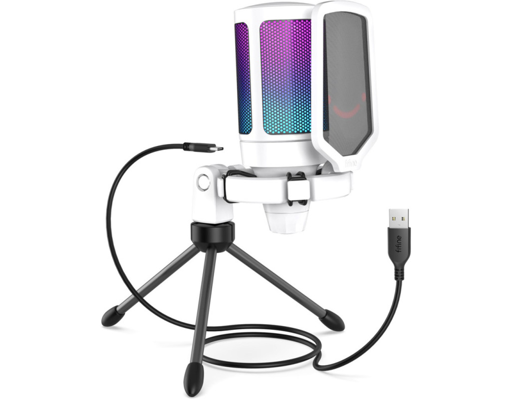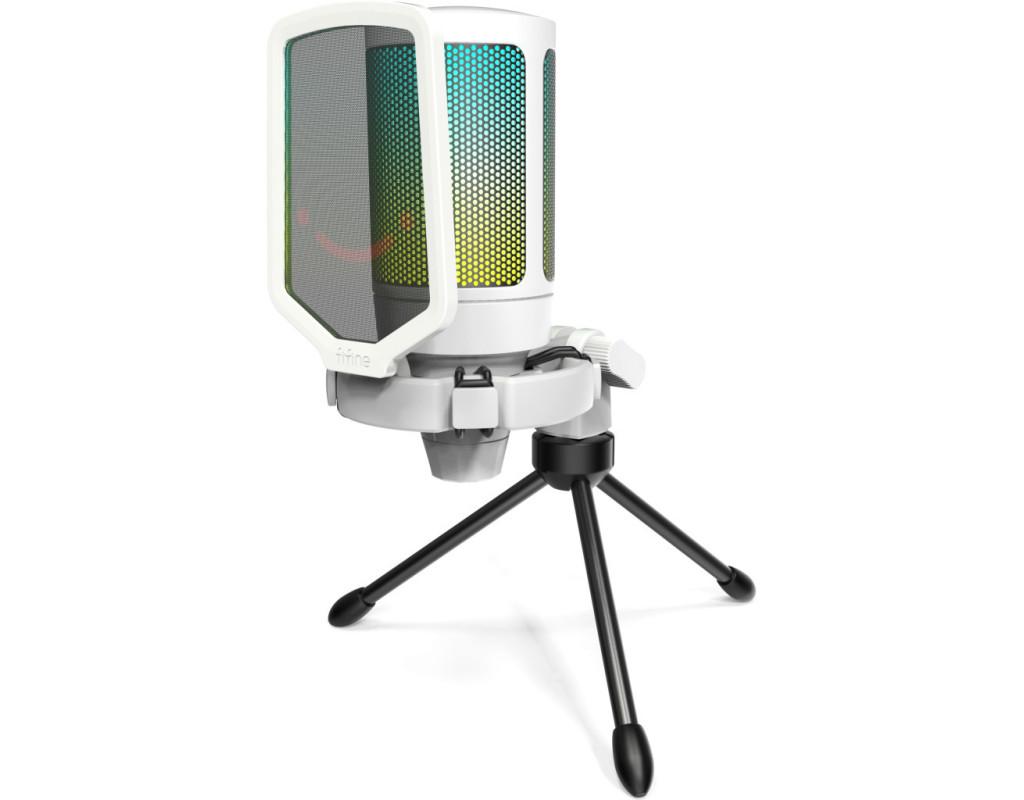 | Fifine AmpliGame – якісний ігровий мікрофон з усіма необхідними аксесуарами, стане справжнім подарунком для досвідченого геймера. Якісний звук із глибокими низькими та чистими високими частотами, зручна тринога, вражаюче RGB-підсвічування, знімний поп-фільтр. Мікрофон працює на консолі Windows, Mac та PlayStation. USB порт розташований прямо за мікрофоном, що робить підключення зручнішим. |