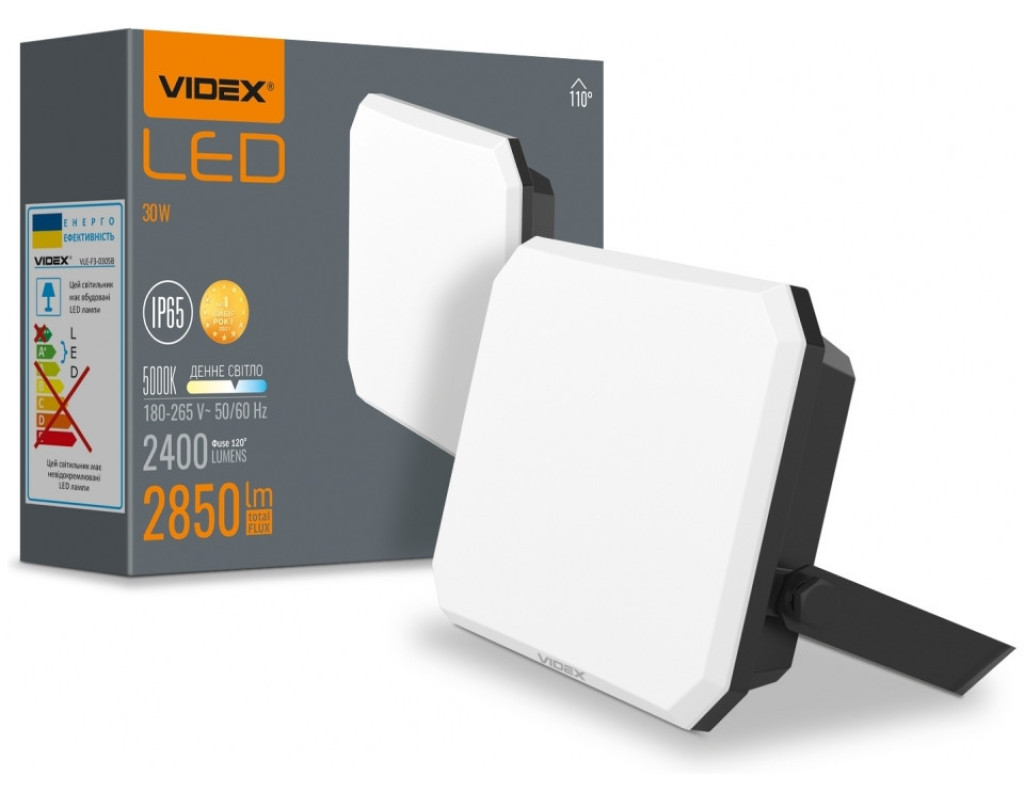 | LED прожектор VIDEX F3 30W 5000K - сучасний світлодіодний прожектор VIDEX забезпечує рівний світловий потік і максимальну потужність з першої секунди роботи. Цей прожектор можливо використовувати для освітлення і підсвічування рекламних вивісок, конструкцій, автостоянок, гаражів, зовнішнього підсвічування будівель і споруд, спортивних майданчиків, стадіонів, промислових об'єктів, створення світлових ефектів. Його розміри становлять усього 101x141x33мм. Корпус LED прожектора виконаний з алюмінієвого сплаву та полікарбрнату цього цілком достатньо, щоб протистояти волозі, дощу, снігопадам та іншим погодним опадам. Клас захисту IP65 і високий захист від ударів IK07. Сила світлового потоку цього прожектора становить - 95Лм/Вт, а сумарний світловий потік прожектора становить 2850Лм (2400Лм Фuse 120°). Має тривалий термін експлуатації і високу стійкість до навантажень під час вмикання та вимикання (20 000). Ресурс роботи - 30 000 годин. Гарантія - 2 роки! Не містить шкідливих речовин. |
